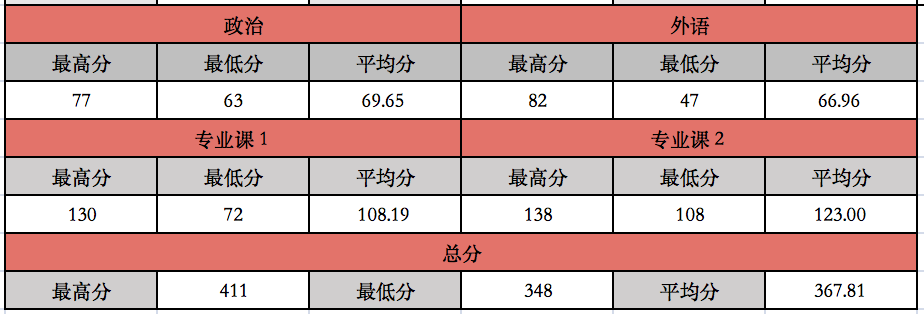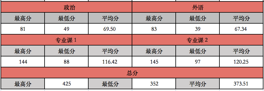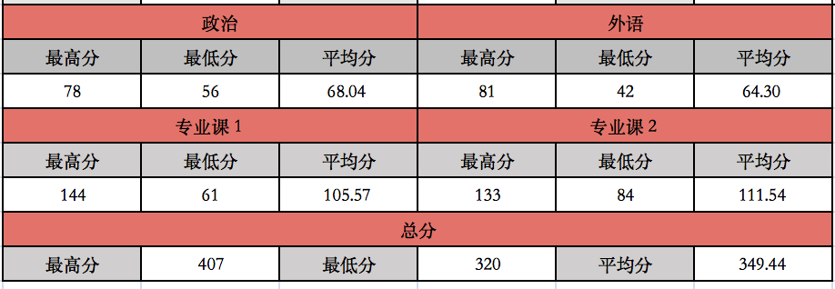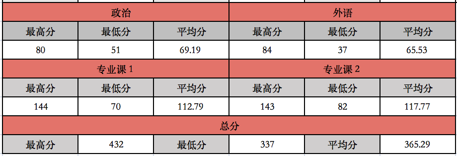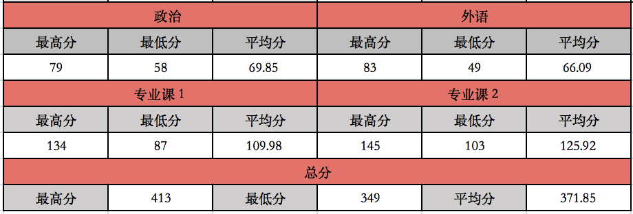 网安学院电子信息一志愿上线考生初试成绩统计如下:
