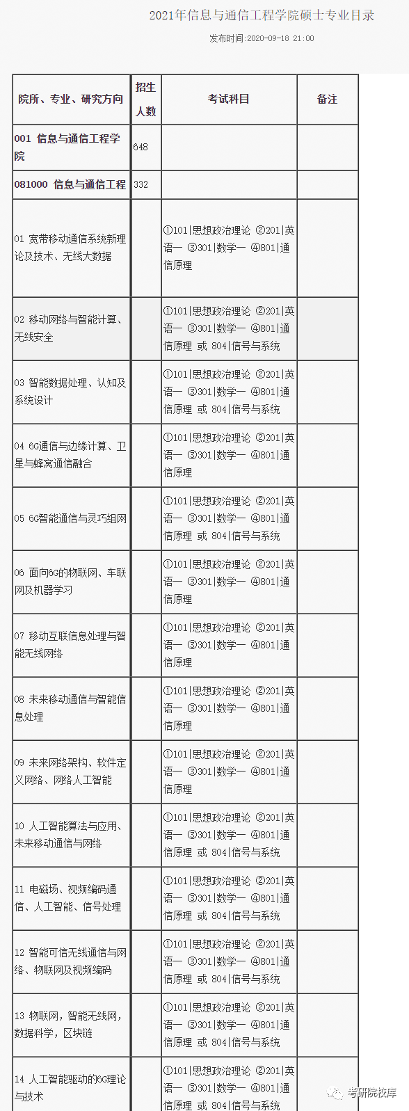 专业目录是我们考研择校时需要考虑的一个重要因素,体现了报考院校所招生的专业有哪些及研究方向,今天为大家推送的是北京邮电大学2021年考研招生专业,供大家参考: